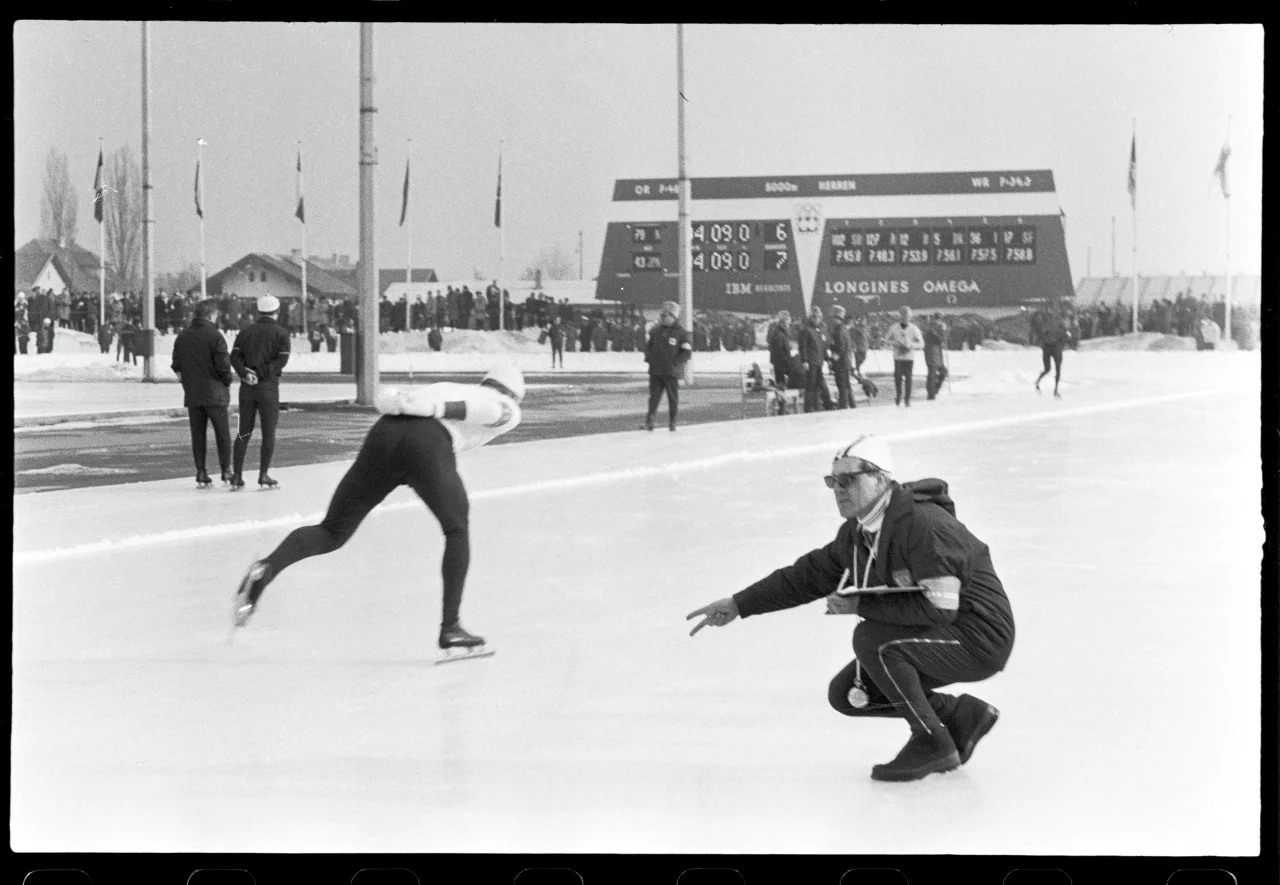 Visualizzazione del tempo ai Giochi Olimpici di Innsbruck nel 1964. Sul tabellone ufficiale sono visibili i loghi di Longines e Omega. Foto Archivio Nazionale Norvegese