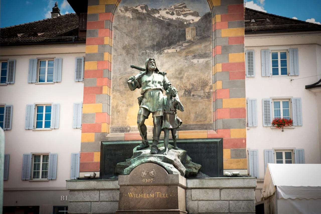Uri diventa così uno dei cantoni fondatori della nostra Svizzera, simbolo di autodeterminazione e responsabilità collettiva. Tra queste valli prende forma anche la leggenda di Guglielmo Tell, figura che attraversa Uri come un’eco potente e incarna ancora oggi un’idea di libertà radicata nella quotidianità più che nella retorica. Arciere, padre, uomo libero: la leggenda narra il suo rifiuto di piegarsi all’autorità arbitraria del balivo Gessler, il gesto drammatico della mela posta sulla testa del figlio e la successiva ribellione – fiamma di una coscienza collettiva. Pur priva di certezza storica, il racconto si intreccia con eventi reali: le tensioni tra i cantoni rurali e le autorità imperiali nel XIII secolo, la volontà di autonomia e l’aspirazione a leggi condivise, tutte sfumature che il mito racchiude in un unico gesto eroico. Ancora oggi, Tell non è un eroe lontano, ma una presenza fiera: nella piazza di Altdorf, nei racconti patriotici e nell’immaginario collettivo.
