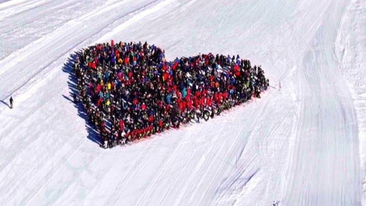 Alcuni giorni dopo il dramma, un gruppo di sciatori ha voluto segnalare la propria vicinanza alla comunità colpita con un grande “cuore umano”