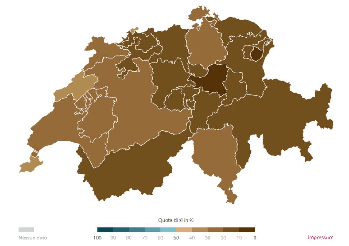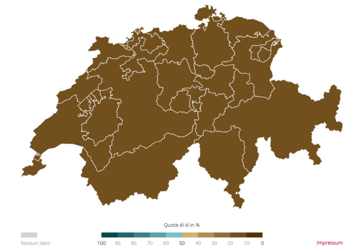 I numeri sono impietosi: nessun cantone, e nessuno dei 2’100 comuni, ha approvato l’iniziativa lanciata da un piccolo comitato ginevrino. Alla fine, l’iniziativa è stata respinta dall’84,1% dei cittadini. Uno dei risultati peggiori degli ultimi 25 anni: solo l’iniziativa “Imposta sull’energia invece dell’IVA” nel 2015 era stata bocciata con proporzioni ancora più alte.